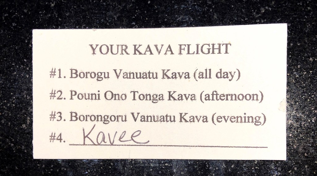 What is the tongue numbing effect, you ask? Well, sometimes Kava can make your mouth feel numb to the point where you think you are having an allergic reaction. I promise this is 100% natural. For me, the Kava that made my mouth the most numb was the Borogu Vanuatu Kava. The flavor in that one was very strong, as well as the effects! If you want to try this (the BVK) I highly recommend you only get the 4oz shot because it might be a tad bit too strong for you. Then again, the staff can add coconut milk, half & half or a sweetener in there if you need it.
